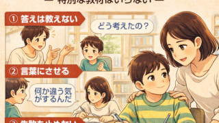 思考力は特別な教材がなくても、家庭で育てることができます。答えを教えない関わり方や声かけなど、今日からできる具体的な方法を紹介します。